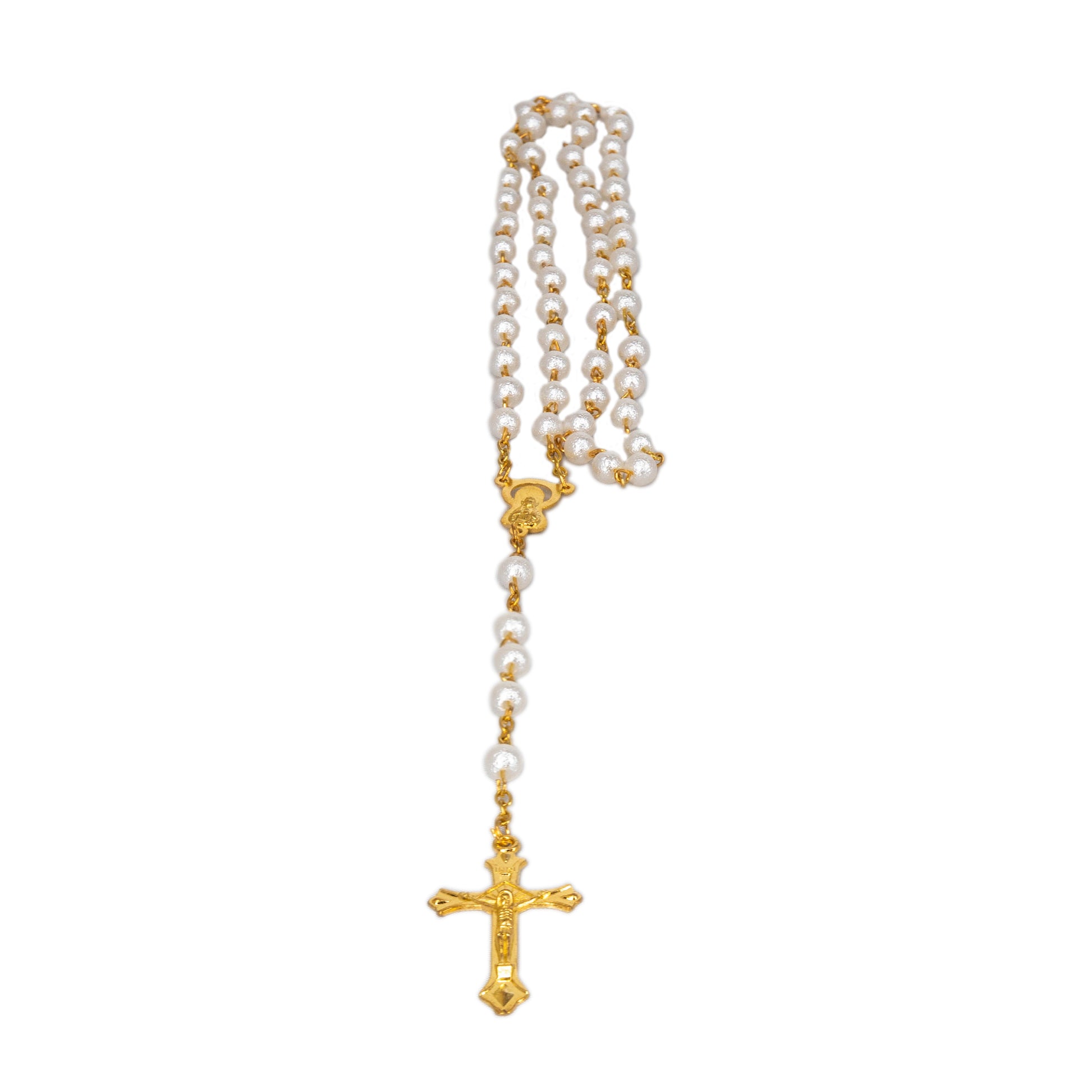 White pearl gold plated rosary beads